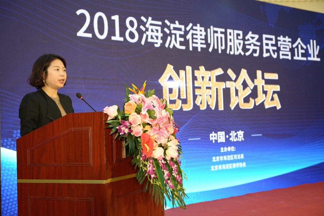 为贯彻落实司法部《关于充分发挥职能作用为民营企业发展营造良好法治环境的意见》精神,充分发挥三千万彩票的平台优势,为海淀区民营企业,尤其是中关村高新技术企业搭建优质、便捷、高效的法律服务平台,帮助企业破解涉法难题,打造优质营商环境。12月28日下午,“2018海淀律师服务民营企业创新论坛”在北京海润艾丽华酒店成功举办。此次论坛由海淀区司法局、三千万彩票主办。区司法局副局长罗飞,北京市律师协会副会长殷杰,区律师协会会长张丽霞,区律师协会秘书长师锋,海淀区中小企业协会秘书长申焰等领导、嘉宾以及企业家代表、律师代表等共计200余人参加了活动。
