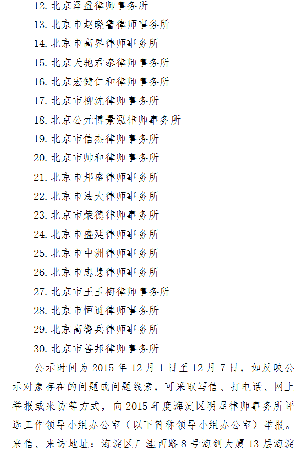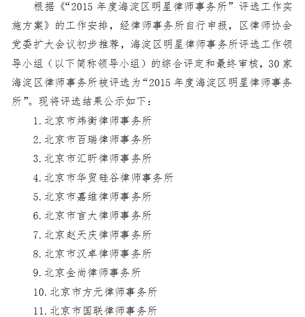 2015年度海淀区明星律师事务所”评选结果公示