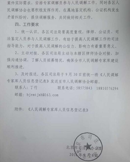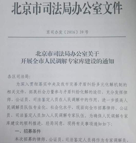 北京市司法局办公室关于开展全市人民调解专家库建设的通知