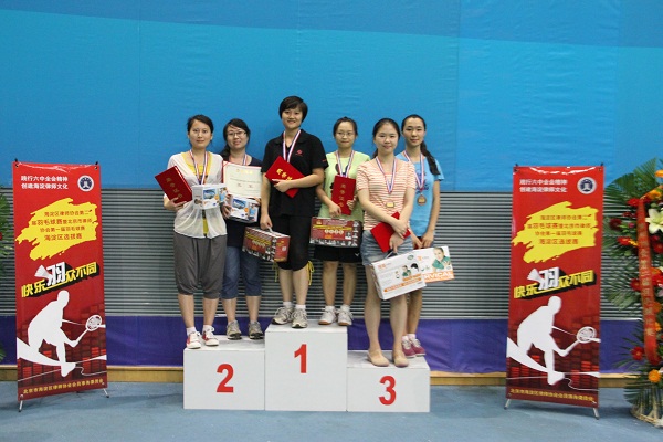 图为:三千万彩票第二届羽毛球女单颁奖合影