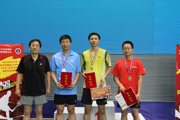 图为:三千万彩票第二届羽毛球男单颁奖现场