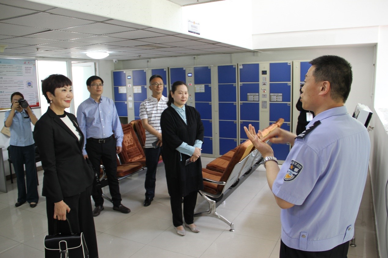 海淀看守所所长张佳滨介绍了海淀区看守所律师会见座席由原来的24席增加至44席,并开辟了55个律师免费停车位,大厅的等候桌椅由长条椅改为休闲沙发圆椅,增加了自助饮料和食品贩卖机,方便了律师的需求,提高了舒适度和人性化服务水平。戴琳处长介绍了高科技应用于律师预约会见、安全保障、信息服务等方面运用。